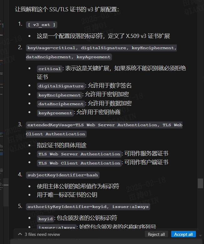 openssl req -new -key tikv.pem -out tikv.csr -subj "/C=CN/ST=Beijing/L=Beijing/O=Qianxin/OU=Zion/CN=tikv-server" -config openssl.cnf