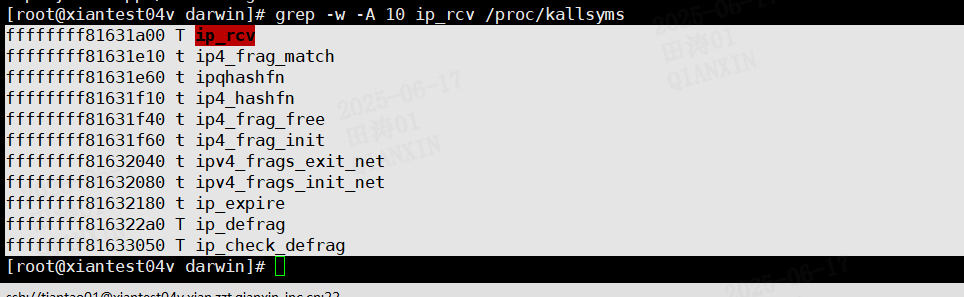 非常好,你现在给出了 `ip_rcv` 及其相关函数的内核符号地址: