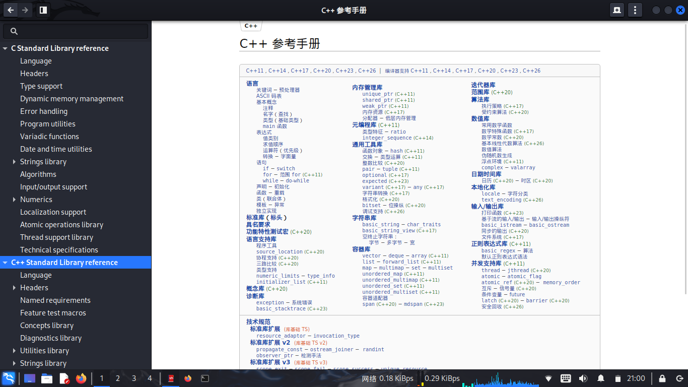 首先需要两个资源:devhelp和https://zh.cppreference.com/ 的帮助文档