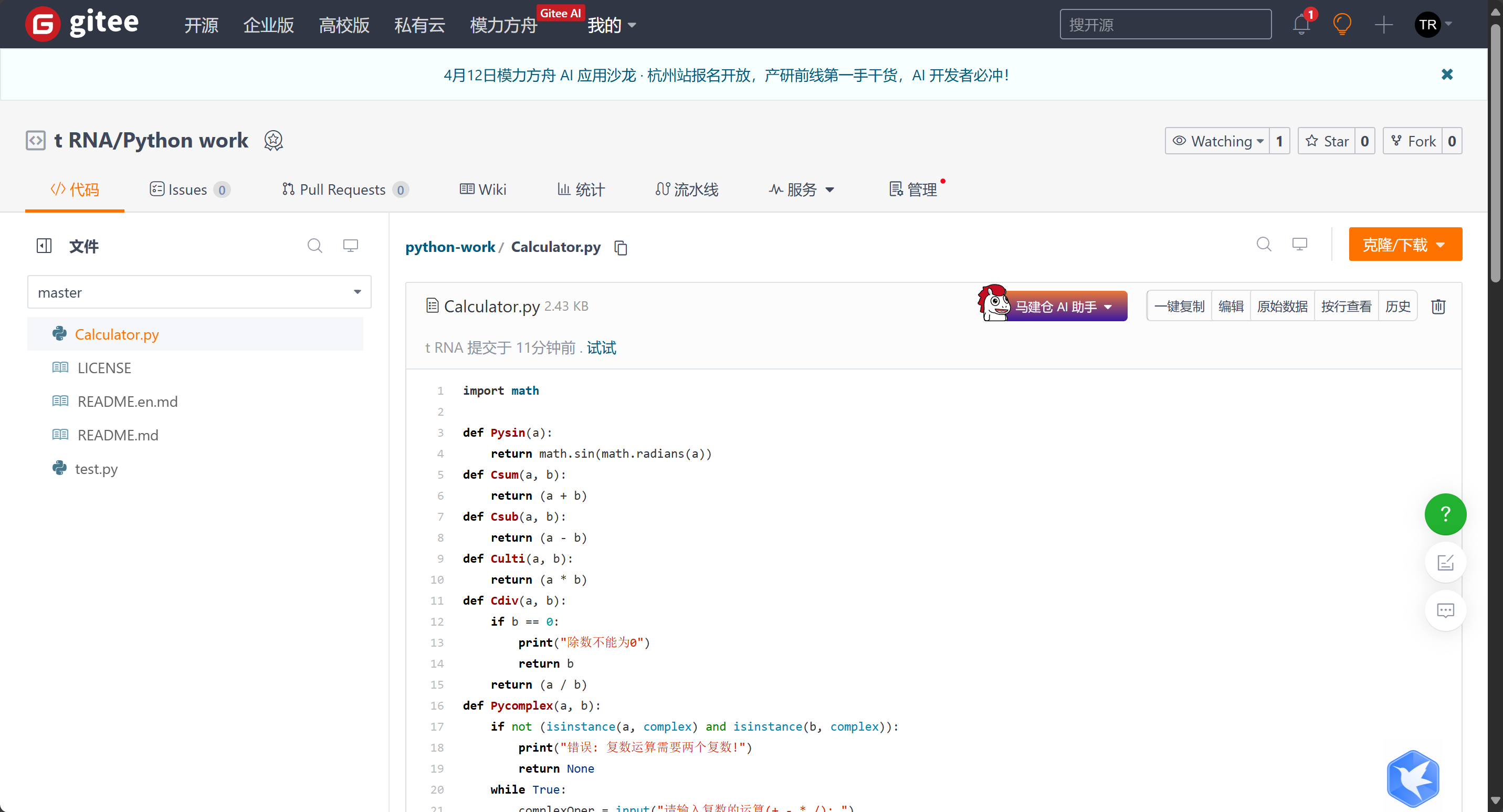 编写好代码后,将代码上传托管到码云中。