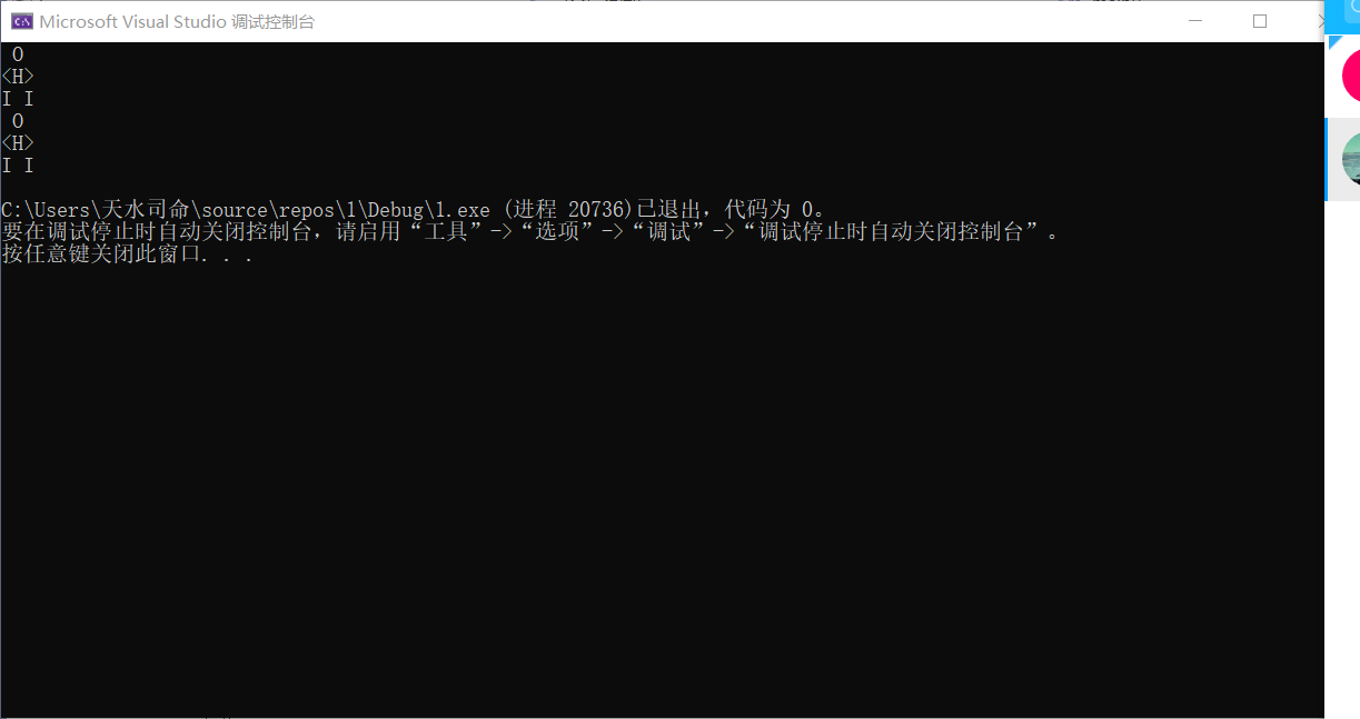 #include<stdio.h> int main() { printf(" O\n"); printf("<H>\n"); printf("I I\n"); printf(" O\n"); printf("<H>\n"); printf("I I\n"); return 0; }