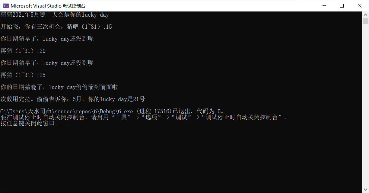 printf("猜猜2021年5月哪一天会是你的lucky day\n");
