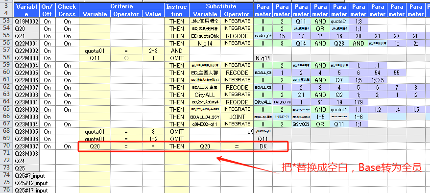 如:百乐Step1,q28<>可擦中性笔 →q14使用中性笔 (7) 删除