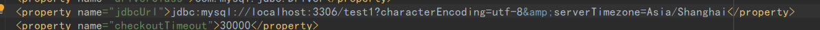 <property name="jdbcUrl">jdbc:mysql://localhost:3306/test1?characterEncoding=utf-8&serverTimezone=Asia/Shanghai</property>