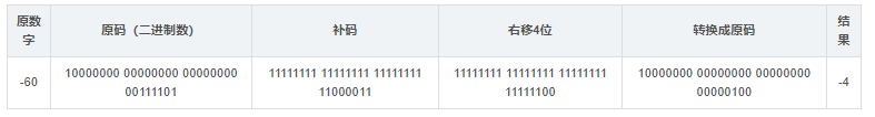 ① 负数的右移:需要保持数为负数,所以操作是对负数的二进制位左边补1。如果一直右移,最终会变成-1,即(-1)>>1是-1。