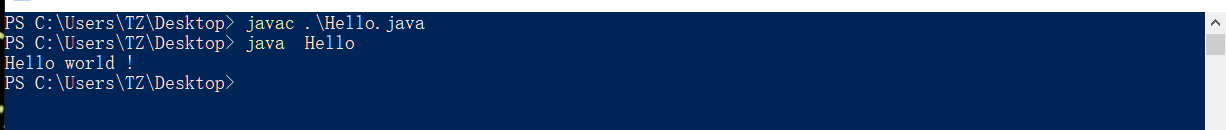 第3步:继续执行Java Hello 命令,得到输出结果。