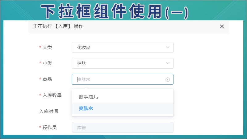 有效云开发平台是一个低代码、可视化开发平台,在集成开发环境只需要编写极少量代码即可实现各种业务逻辑的处理。上例中演示了下拉框的使用过程,这是一个库存管理,入库选择商品的业务流程,商品分为两类包括大类和小类,先选择大类,再选择大类下的小类,然后再选择小类下的具体商品。