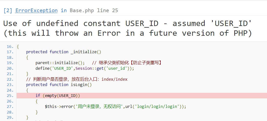 直到将 _initialize()改为initialize()【哦~tp5.0初始化为_initialize(),tp5.1初始化为 initialize()】难怪USER_ID一直报错,不起作用