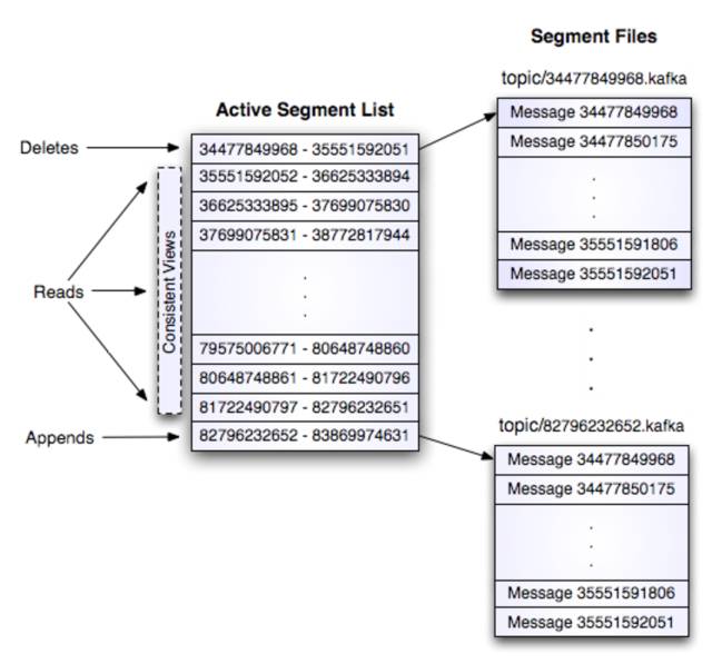 从代理删除消息变得很棘手,因为代理并不知道消费者是否已经使用了该消息。Kafka创新性地解决了这个问题,它将一个简单的基于时间的SLA应用于保留策略。当消息在代理中超过一定时间后,将会被自动删除。