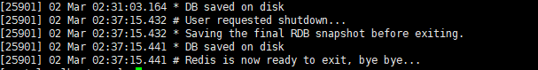 执行shutdown命令时,会在服务窗口生成相应的日志,从日志中可以看出redis会先把数据保存到磁盘,再退出。