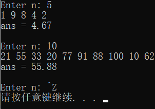 printf("ans = %.2f\n\n", ans);