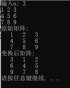 printf("变换后矩阵:\n");
