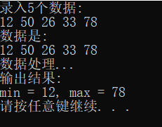 printf("min = %d, max = %d\n", min, max);