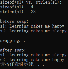 s1 和 s2 的内容已成功交换