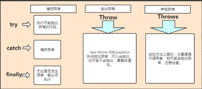 抛出异常→捕获异常→捕获成功(当 catch 的异常类型与抛出的异常类型匹配时,捕获成功)→异常被处理,程序继续运行,抛出异常→捕获异常→捕获失败(当 catch 的异常类型与抛出异常类型不匹配时,捕获失败)→异常未被处理,程序中断运行