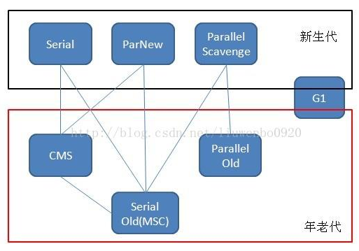 因此 java 虚拟中针对新生代和老年代分别提供了多种不同的垃圾收集器,JDK1.6 中 Sun HotSpot 虚拟机的垃圾收集器如下: