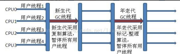 新生代 Parallel Scavenge 和老年代 Parallel Old 收集器搭配运行过程图: