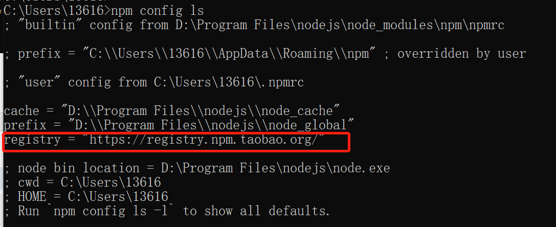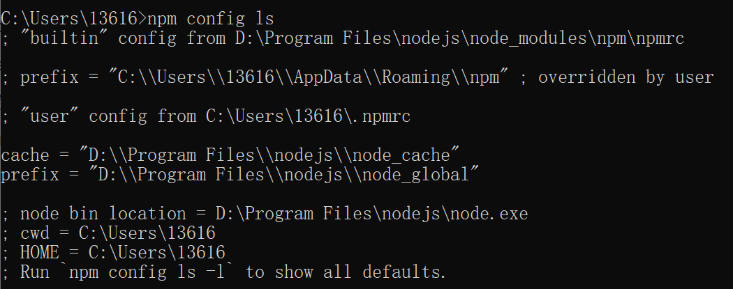 # npm config ls