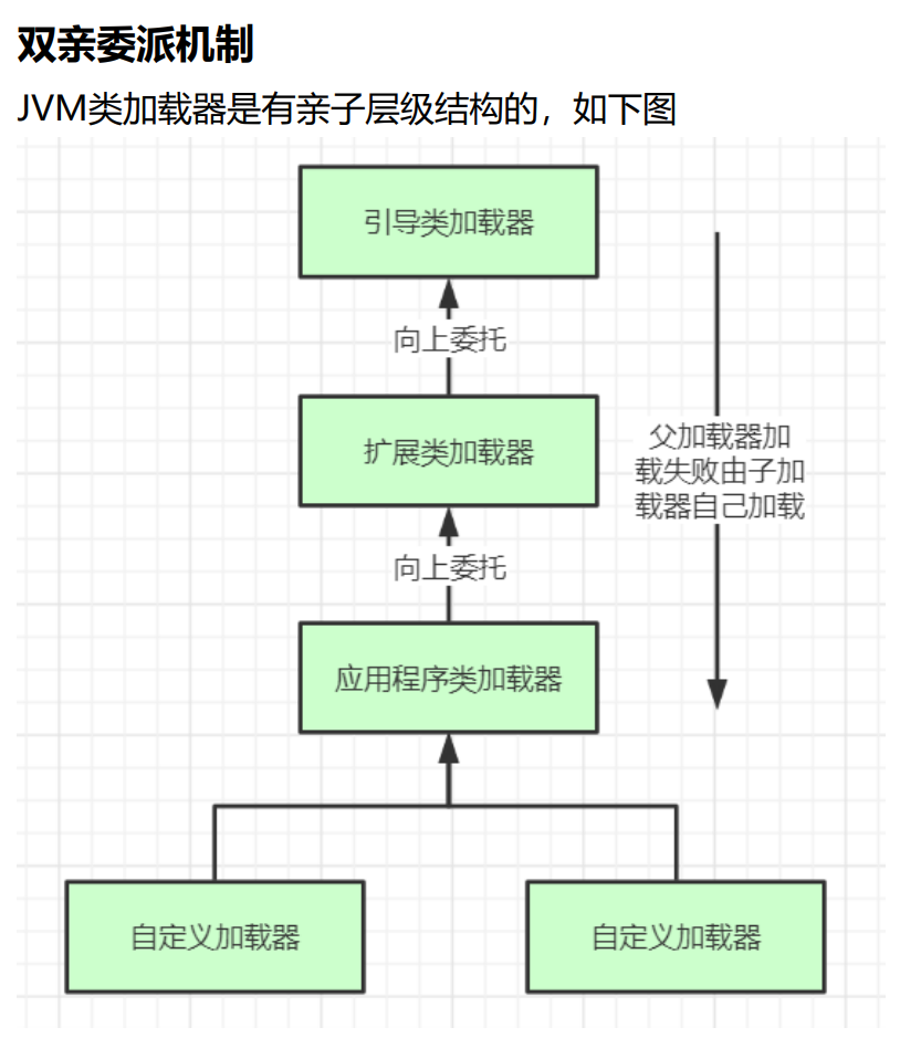 加载某个类时会先委托父加载器寻找目标类,找不到再委托上层父加载器加载。
