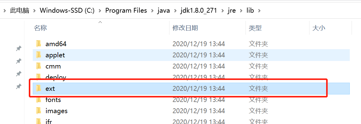 2、扩展类加载器:负责加载支撑JVM运行的位于JRE的lib目录下的ext扩展目录中的JAR 类包