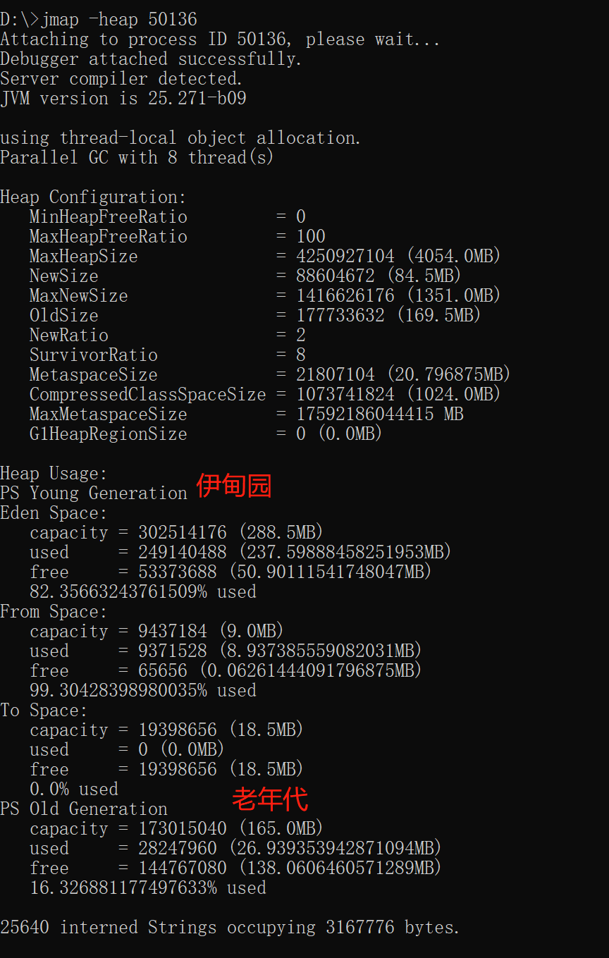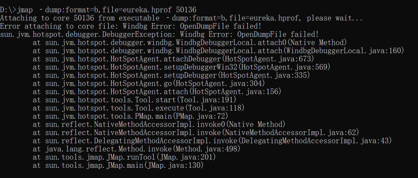 // 输出堆内存信息到eureka.hprof > jmap ‐dump:format=b,file=eureka.hprof (端口号)