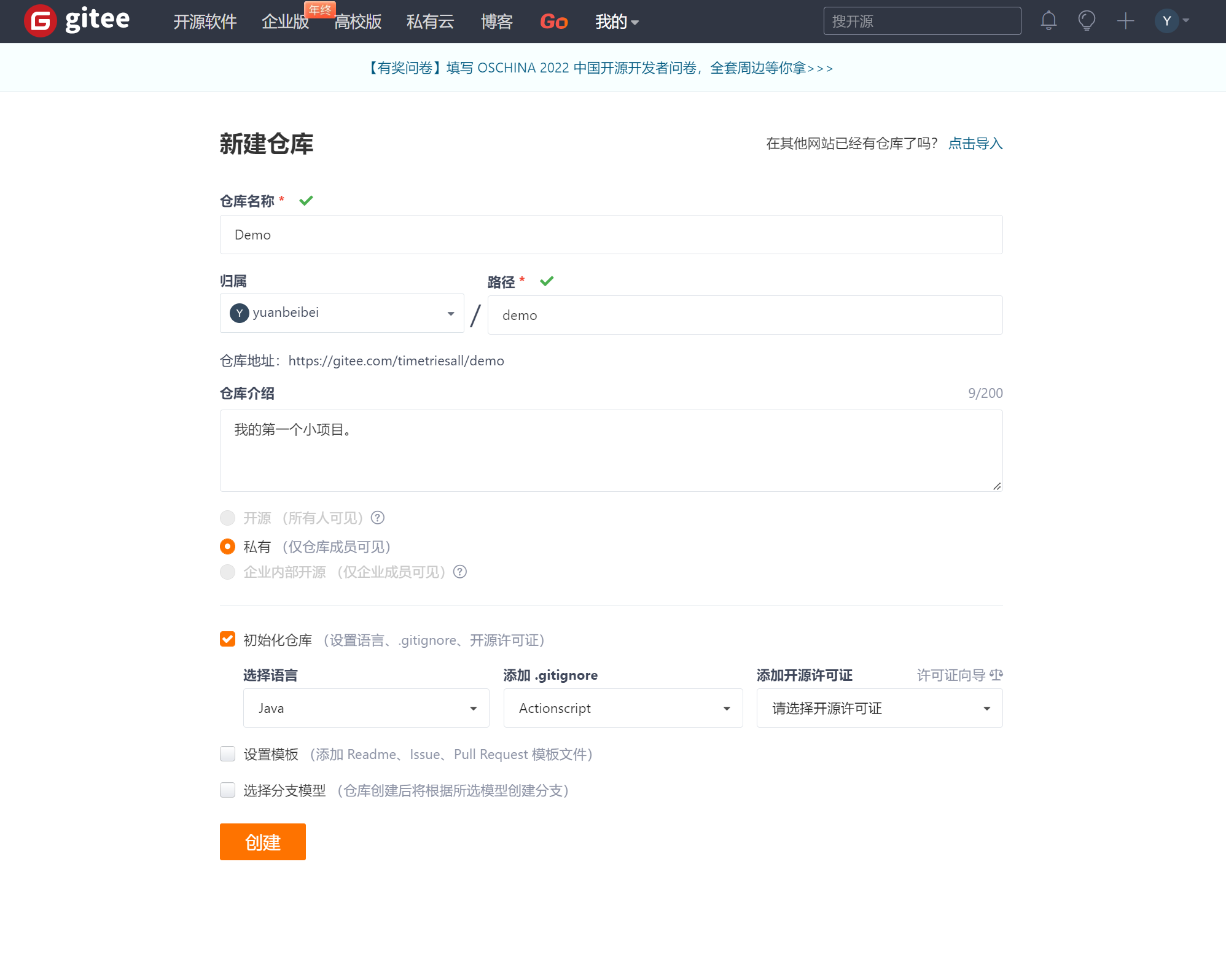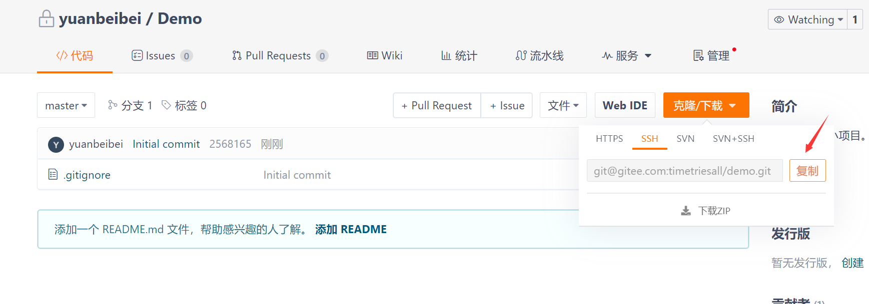 本地项目初始化Gitee仓库