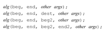 其中alg是算法的名字,beg和 end表示算法所操作的输入范围。