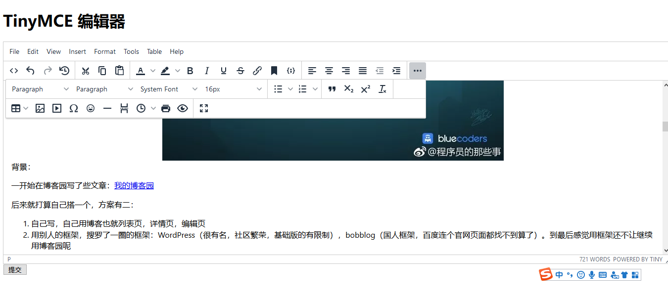 先把所见即所得编辑器搞定(博客标准配置),后面详情页就好多了