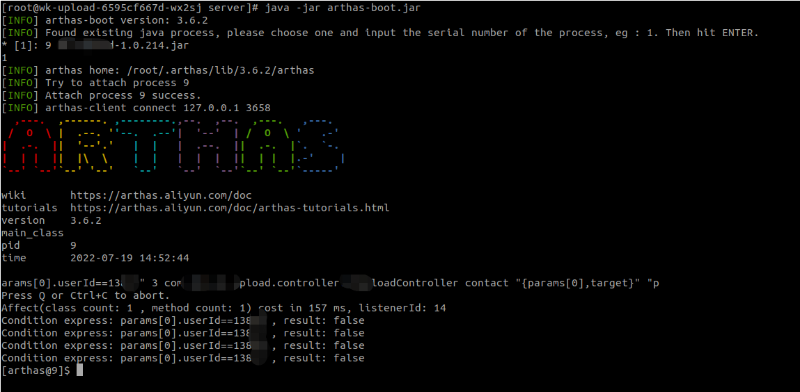 Arthas(阿尔萨斯) Springboot 线上查看指定用户请求传参JSON