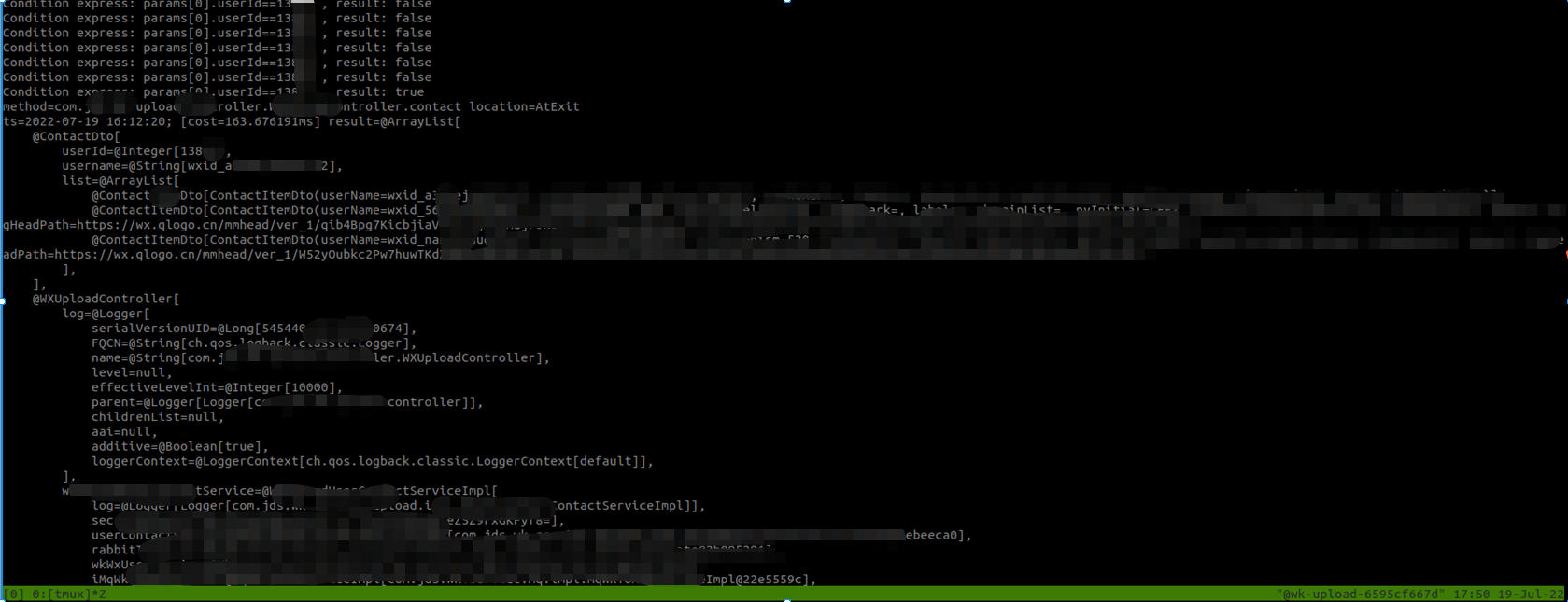 watch -v -x 3 com.xupload.controller.WXUploadController contact "{params[0],target}" "params[0].userId==138xx"