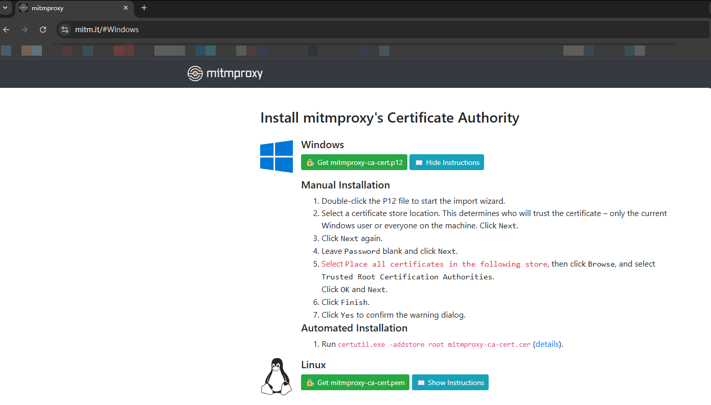 在浏览器中访问 https://a.com/userInfo,mitmproxy 会拦截请求并将其重定向到 http://localhost:8080/userInfo。