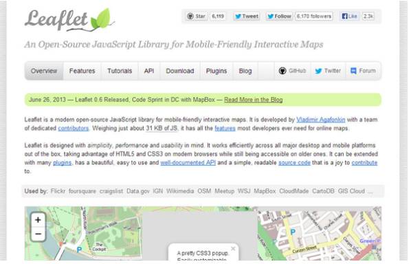 13Leaflet // @LeadletJS一个开源JavaScript库,Leaflet是用来创建移动友好性、交互式地图的工具。由Vladimir Agafonkin和一个团队贡献开发而成,Leaflet设计的目标是简洁性、表现性和易用性。