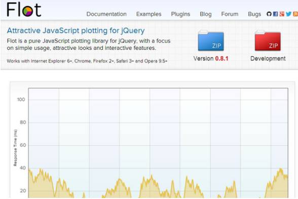 3NodeBox // @NodeboxJQuery的一个JavaScript绘图库,Flot是一个基于浏览器的应用程序,并且能够兼容大多常见的浏览器,包括IE、Chrome、Firefox、Safari和Opera。Flot对于数据观点支持多种可视化选择,交互式图表、堆叠式图表、平移和缩放,以及通过各种插件实现各种特定功能。