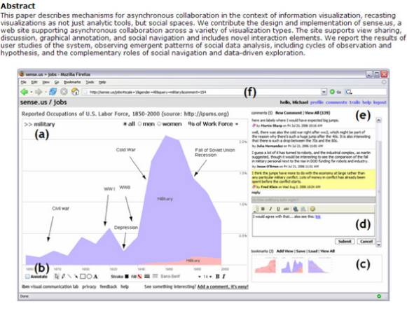 30Many EyesMany Eyes是由IBM研究所和IBM Cognos软件小组的试验成果。该工具提供了一个平台,用于创建各种可视化效果说明数据点关系,比较的值集,创建线性和堆栈图、分析文本,或查看整个饼图或树图中的各个部分。