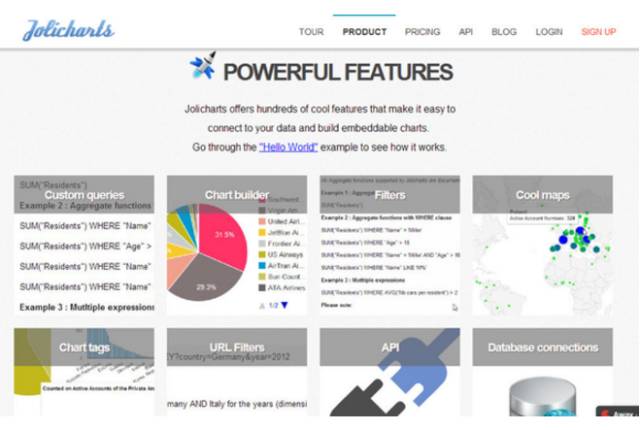 iCharts是基于网络端的应用程序能够在网页上生成引人注目的数据可视化工具。这种云本地应用程序工具是“是为企业云应用内置的唯一数据可视化平台”。将图表和图形集成到网站/应用程序或通过社交媒体或iCharts图表频道分发完成可视化。