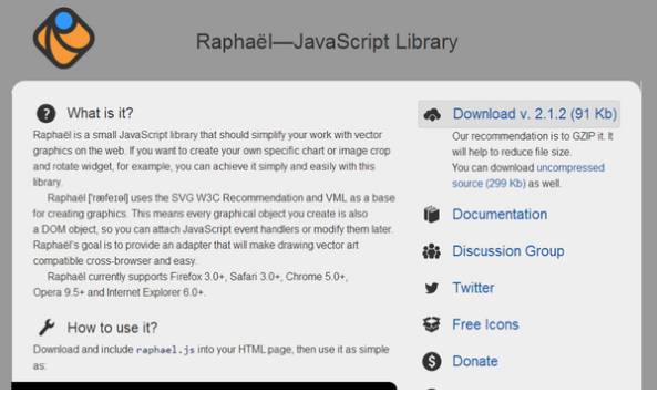 一个JavaScript库用来在网页上创建矢量图形,Raphael使用SVG和VML,因此每一个被创建的图表同时也是一个DOM对象,Raphael的目标是能够矢量图表作品能够跨浏览器兼容。
