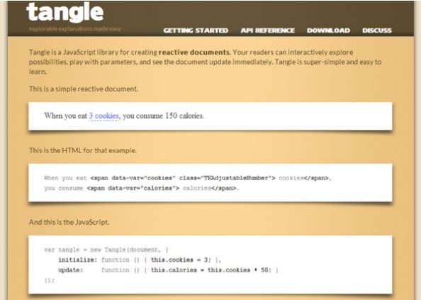 6TangleTangle是一个JavaScript库和工具,不仅仅是视觉化,还允许设计师和开发者创建reactive程序,对数据的关系可以提供深层理解。例如,一个网页端的转换计算器能够转换货币或测量。