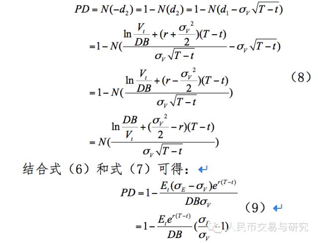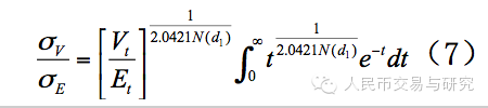 其中,公司资产市场价值波动率即为联立式(6)和式(7)所求,为正态分布。