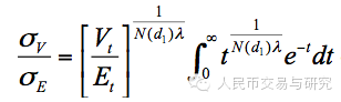 模型的求解需要公司资产价值波动率和股票价值波动率的关系函数,一般结构化模型根据Merton(1974)关于资产波动率的方程,即,可是大量文献实证表明,此关系函数在中国资本市场的适用性较差,鲁炜、赵恒珩、刘冀云(2003)使用一个两参数的 Weibull 分布,推导出和的关系函数为: