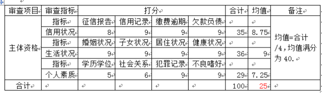 在审查征信报告或资料时,主要看信用记录是否良好,各项公共缴费是否逾期,欠款负债是否严重,据此打分0~10分。