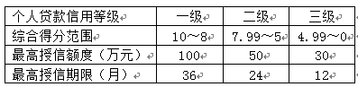 客户得分越高等级越高,授信额度越高,期限也越长。对于三级客户能不能授信呢?具体情况要具体分析,总控制原则是利润永远让位于风险。