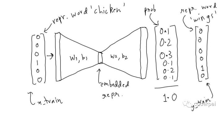 现在,我们需要将输入的原始文本数据转换成一个输入输出对,以便我们对输入的词,可以去预测它附近的词。比如,我们确定一个中心词, 窗口大小 window_size 设置为 n ,那么我们就是去预测中心词前面 n 个词和后面 n 个词。Chris McCormick 的这篇博客给出了比较详细的解释。