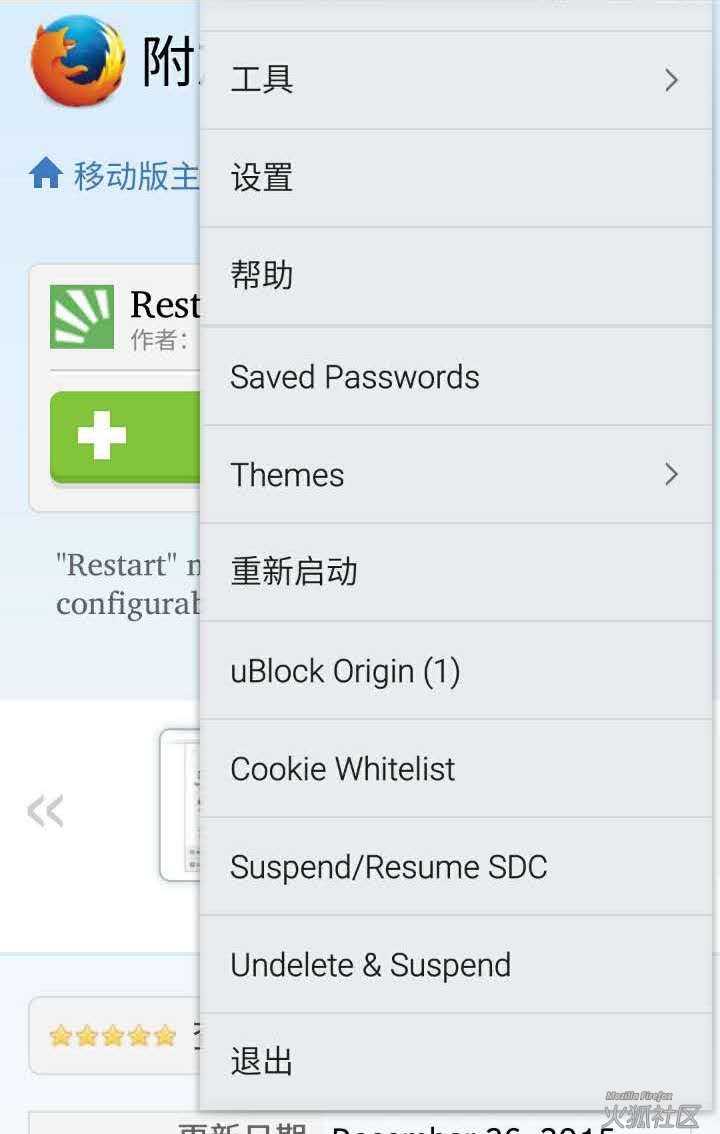 从Firefox20起,Mozilla对Android4.0版本及以上的设备取消了菜单栏的“退出”按钮,以更好地匹配Android系统的UI。开发者仍希望保留这个按钮,于是创建了一个小型的扩展。