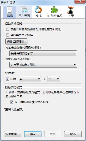 - IETab2(FF3.6+):基于IETab开发的增强版本,除具备IETab的全部功能外,还可以在IE引擎中用Adblocklilus过滤广告,以及同步Cookie使得切换到IE引擎时不需要重新登录。