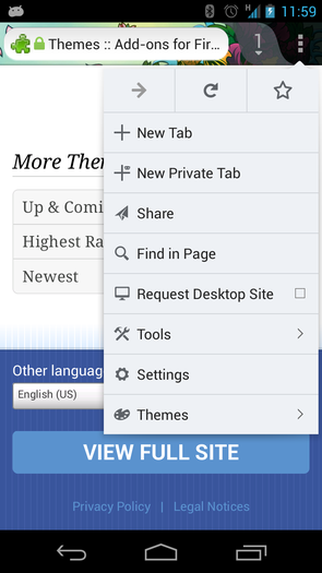 在火狐的菜单中添加一个“Themes”的选项,从菜单轻松改变主题设置