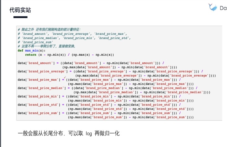 - 非线性变换,包括 log/ 平方/ 根号等;
