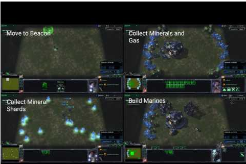 星际争霸的环境大家应该也已经很熟悉了,作为即时策略的代表环境,DeepMind也研究了很长时间,AlphaStar也取得了很亮眼的表现,另外今天国内启元的星际指挥官的挑战赛,表现也不赖(虽然全屏 ),维京和多线用的666,血虐TIME。也有很多知名算法是基于星际环境,如大Qmix,COMA等。这个SMAC环境比DeepMind的pySC2 https://github.com/deepmind/pysc2 更侧重decentralized场景和单元控制,更易去验证一些ma的算法。场景如下: