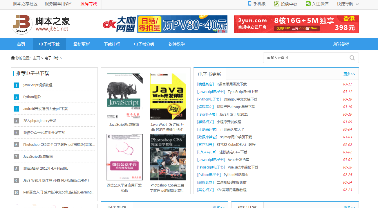 脚本之家资源还是多,而且首页基本全是电子书,有分类,有教学、有文档、有源码、有电子书,是个找资源的好地方。