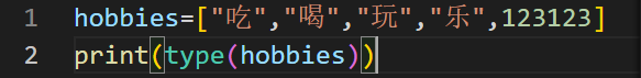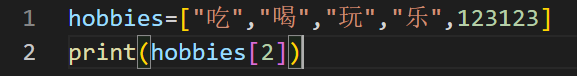 hobbies=["吃",“喝”,“玩”,“乐”,123123]