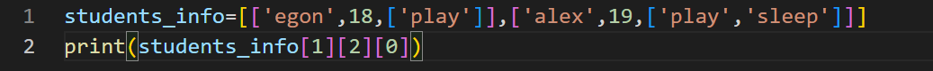 info={'name': 'egon', 'age': 18, 'sex': 'male', 'hobbies': ['play', 'music', 'dancing']}